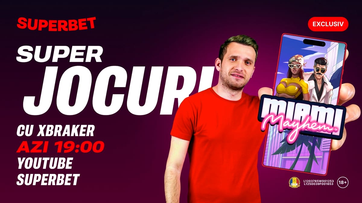 Miercuri, 13, sigur nu e zi cu ghinion, mai ales dacă urmărești live-ul dedicat SuperJocurilor din casino! Xbraker e gazda, jocurile sunt super tari – doar tu lipsești pentru un peisaj complet! SuperJocurile ediției din 13 august Începând cu ora 19:00, urmează SuperDistracție live, pe YouTube Superbet! Jocul emisiunii e Miami Mayhem de la Hacksaw, un slot nou și exclusiv Superbet. Are un câștig maxim potențial de 15.000x miza și distracție captivantă în renumitul stil Hacksaw. Alături de acest joc, expertul în casino va mai testa și: Grand Link Express Hold and Win – Octoplay – Exclusiv! Hot Slot™: 777 Platinum Crown – Wazdan – Exclusiv! Mahjong Wins Super Scatter – Pragmatic Buck Bucks Bagawk™ – Games Global Intră acum… Read More